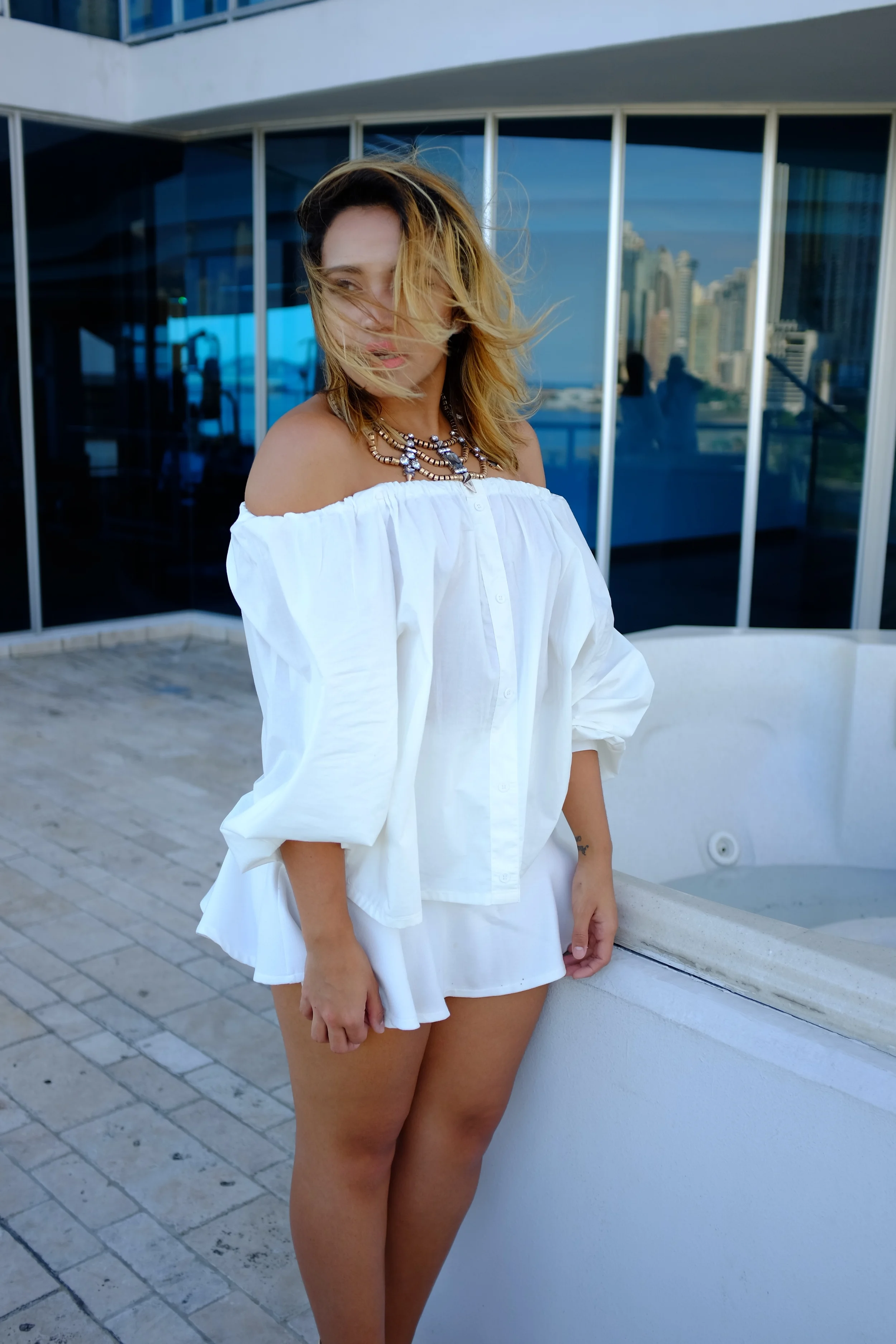 En este ocasión me fui a los extremos y escogí una blusa con mangas súper anchas que tenía en al mira hace meses y que por fin puede conseguir en Nasty Gal. Esta blusa es una versión moderna de la clásica camisa blanca. Muchas veces he escuchado a amigas decir que la tradicional, con cuello y manga larga al mejor estilo Carolina Herrera, no va con su personalidad. Al final, el concepto es el mismo sin importar la forma: una camisa blanca te combinará con todo, desde faldas lápiz para ir a la oficina o jeans para un fin de semana.