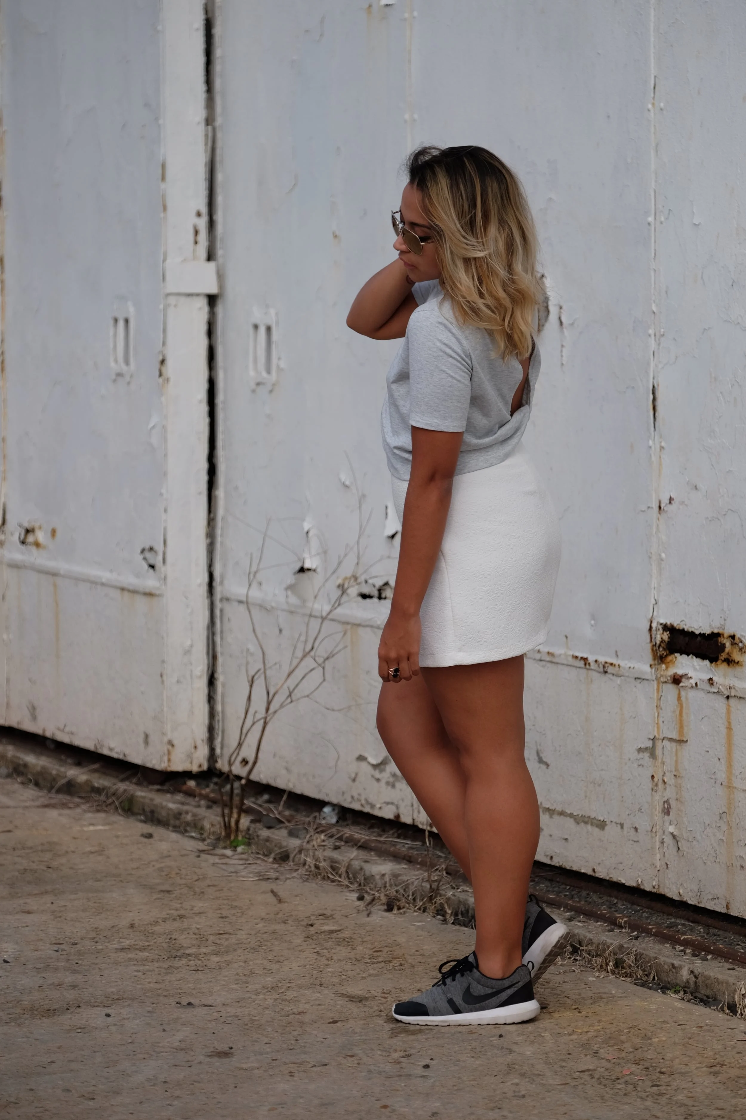 El usar zapatillas tiene sus grandes ventajas. Además de ser muy cómodas, pueden verse súper chic si sabes con que combinarlas. En esta nueva aventura de adaptar mi estilo a mi vida diaria, mis Nike Roshe en gris y negro son perfectas para combinar con prendas minimalistas y con un look deportivo, pero ideales para salir a la calle.