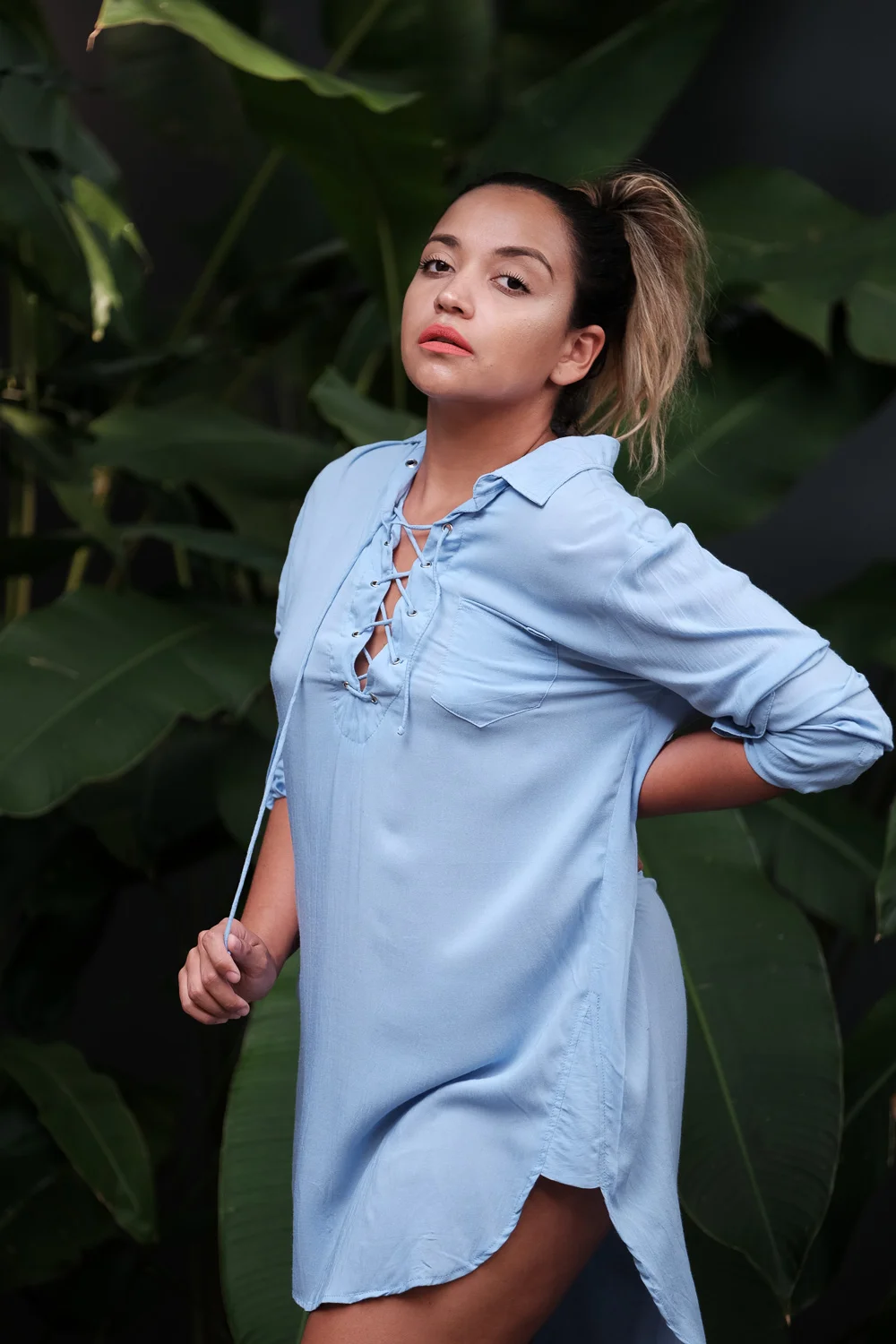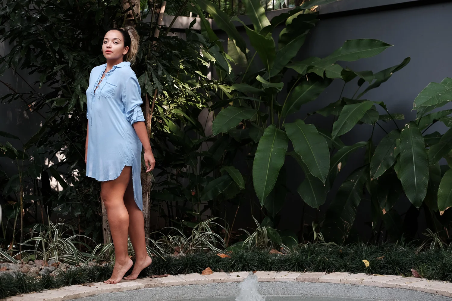En este caso les traigo una opción de como usar el tono Serenity con un vestido de THE HYPE, tienda ubicada en el concept store Casa Nolita. Como pueden ver en las fotos, me encanta como luce esta tonalidad en prendas frescas y de telas suaves, por lo que recomiendo usarlo en blusas para la temporada calurosa o en vestidos de chambray, fábrica que por naturaleza es del color Serenity.