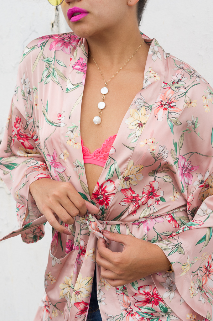 En esa misma línea, opté por combinar la tendencia de kimonos o pijamas con el mismo bralette, dándole ese toque sexy a un outfit casual con jeans.