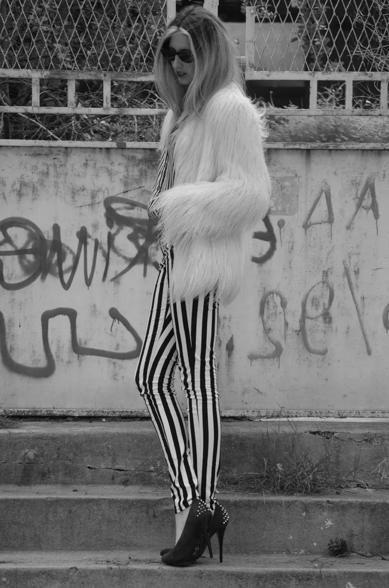 Llegamos al punto medular del asunto. Muchos dicen que las rayas verticales van a ayudarte a verte más delgada, pero la verdad es que el blanco y negro pueden jugarte una mala pasada visual. Si eres delgada, usarlo en pantalones al estilo BALMAIN es una buena opción. Combínalo con una camisa de denim básica y zapatos nude. Si eres más arriesgada, unas botas casuales o un zapatos de color puede ser un buen accesorio. El resto es más sencillo. Yo lo combinaría con prendas negras con tachuelas.