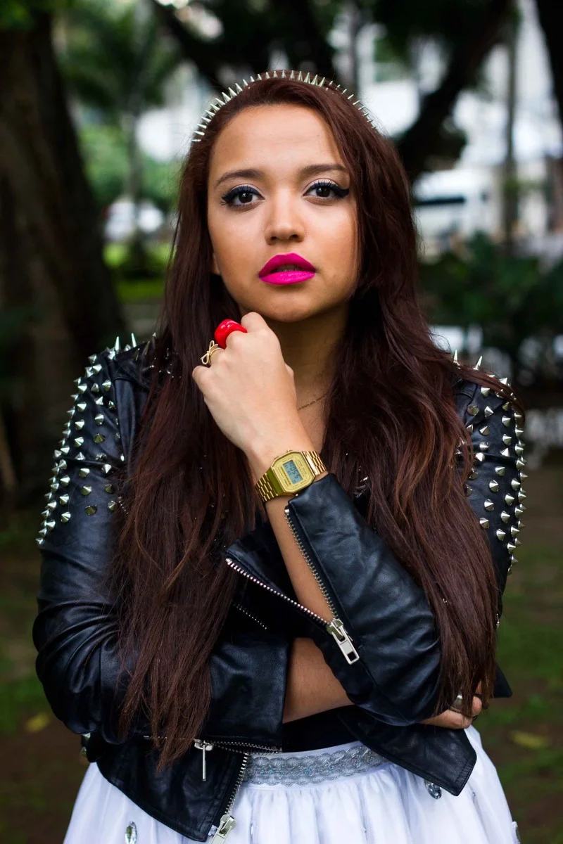 Quiero agregar que desde que le di una oportunidad a las prendas que venden en tiendas populares no he dado vuelta atrás. La tiara de spikes la conseguí en la tienda El Fuerte, de San Miguelito (Si no eres panameño, conformate con saber que es un lugar nada bonito) y el labial es de la marca Wendy, que venden en el almacén La Onda, de Multicentro.