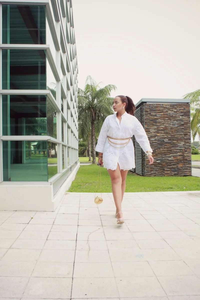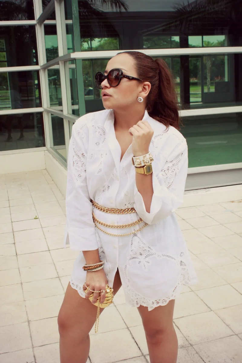 Siendo yo una chica tan clásica y elegante (un poco de sarcasmo no viene mal), combiné mi par de zapatos Zaxy con un 'outfit' blanco con acentos dorados.