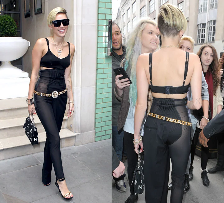 Debo ser honesta. Esta pregunta, y por consiguiente el 'outfit', no llegó a mi mente de la noche a la mañana. Miley Cyrus tuvo mucho que ver en el tema. Sí, lo se, hemos hablado de esto hasta el cansancio en redes sociales, y las opiniones son muy variadas, pero a mi me llevó a un cuestionamiento un poco más profundo. Además de saber si ese brassier CK podrías ser un crop top, quiero descubrir, ¿Que tanto es demasiado a la hora de exponernos? Por razones obvias Cyrus es el punto de partida de mi análisis. Su presentación en los VMAs 2013 hizo bellezas en su cuenta bancaria, pero causó estragos en la mente y psiquis de un par de seres humanos en el mundo. Quien me conoce sabe que no soy para nada conservadora, es más, a estas alturas hay pocas cosas que me escandalizan. Lo de Cyrus no me escandalizó, pero si me puso muy alerta. En primer lugar el problema no fue lo que hizo, sino lo falso que le salió. Les puedo asegurar que si una Rihanna se para en ese escenario y se descalabra al mejor estilo ghetto, todavía estuvieramos con la boca abierta por el simple hecho de que le creeríamos el papel que hizo. She tried SO hard. Pero ese no es el tema que buscamos tratar aquí, sino hasta que nivel es aceptable bailar en ropa interior de latex mientras le pones el trasero a un hombre que te arrima toda.