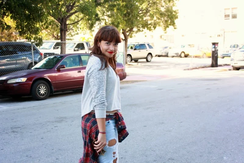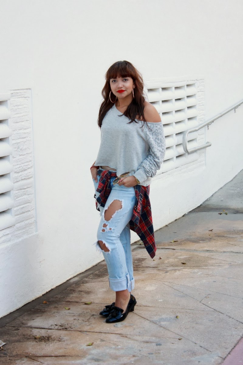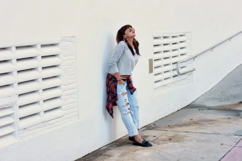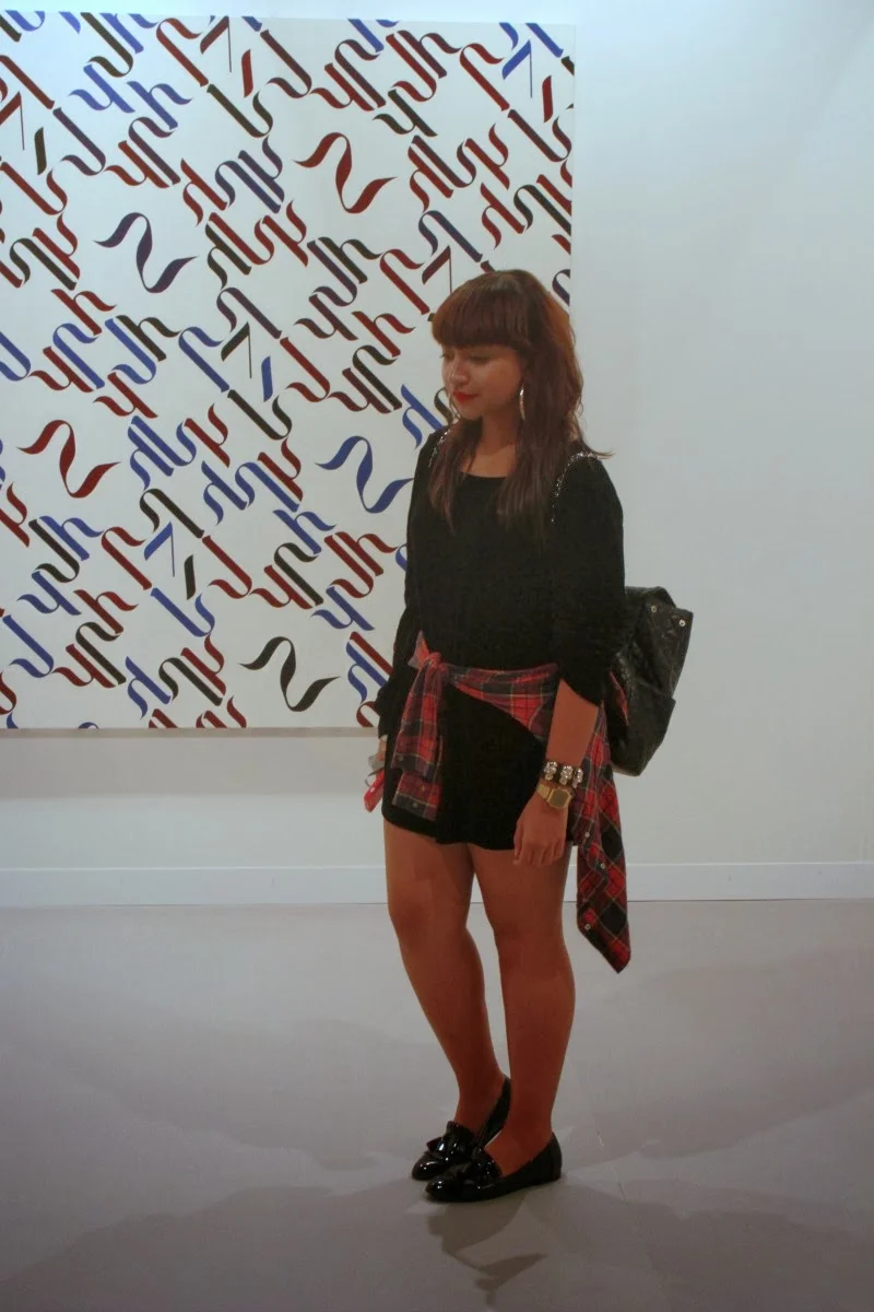 Además de por fin entrar a la feria, fui a un thrift shop en Hialeah, donde conseguí piezas espectaculares. Una de ellas fue el vestido negro de terciopelo que usé para visitar las galerías, que por ser tan corto tuve que usar por fuerza mi camisa de cuadros favorita, que ya debe tener cansado a más de uno. Tranquilos, conseguí el relevo de la camisa en el thrift shop. El primer atuendo tiene como protagonista un pantalón boyfriend que tenía en el fondo del clóset y es muy cómodo, a juego con piezas que ya ustedes conocen.