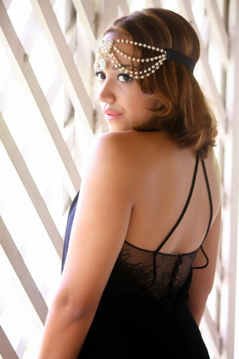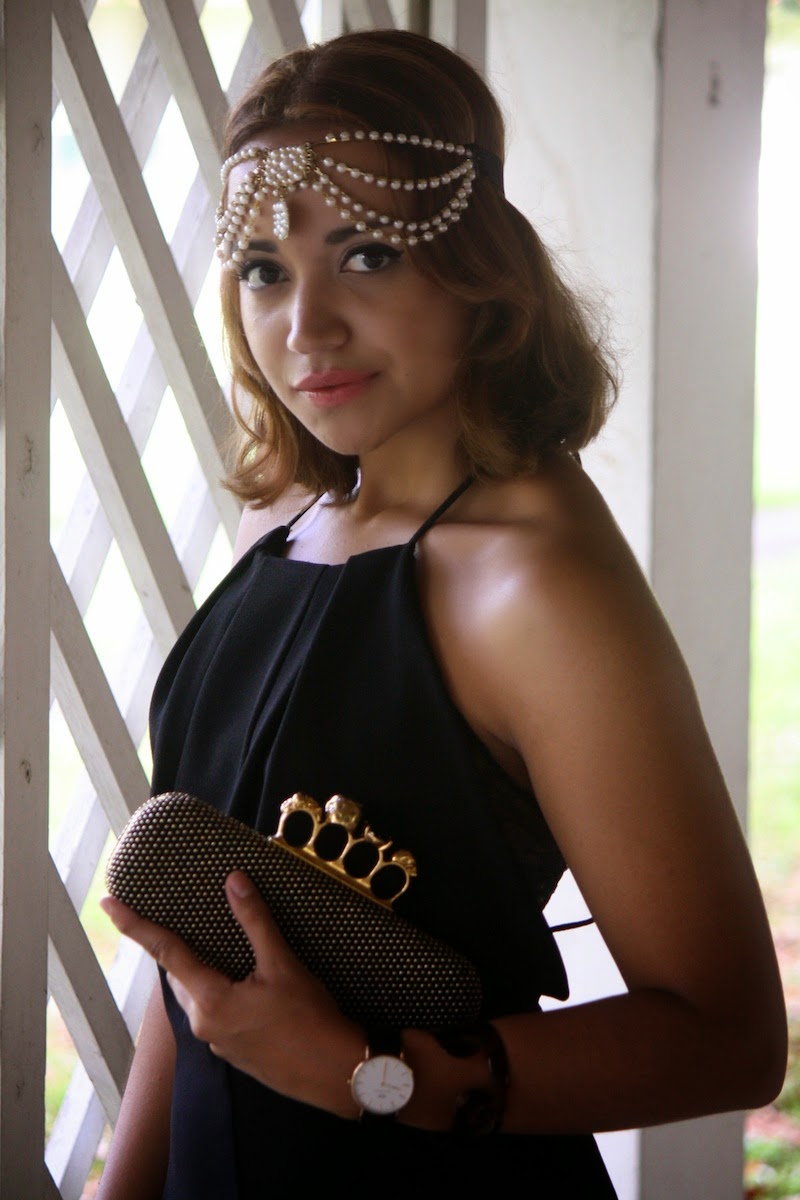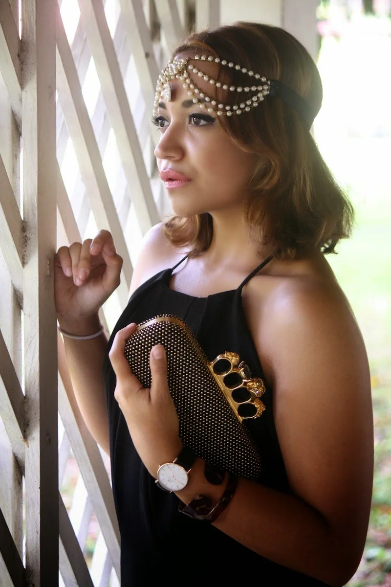 Las opciones de Luxury Expressions incluyen este clutch de Alexander McQueen que resume todo lo que me gusta en la moda: los colores negro y dorado, studs y calaveras. Combinado con un vestido negro con encaje, y mi adorado bindi de perlas, logre este look inspirado en los años 20 que va perfecto con el romanticismo punk del diseño McQueen.
